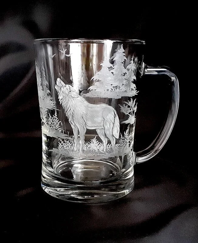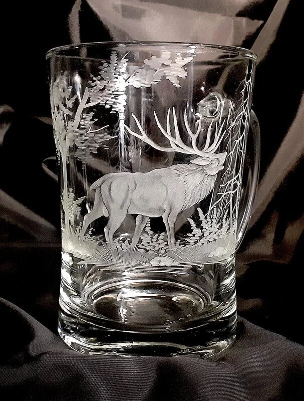 Hand engraved beer mug with Elephant mom and baby elephant ( slon ) African wildlife