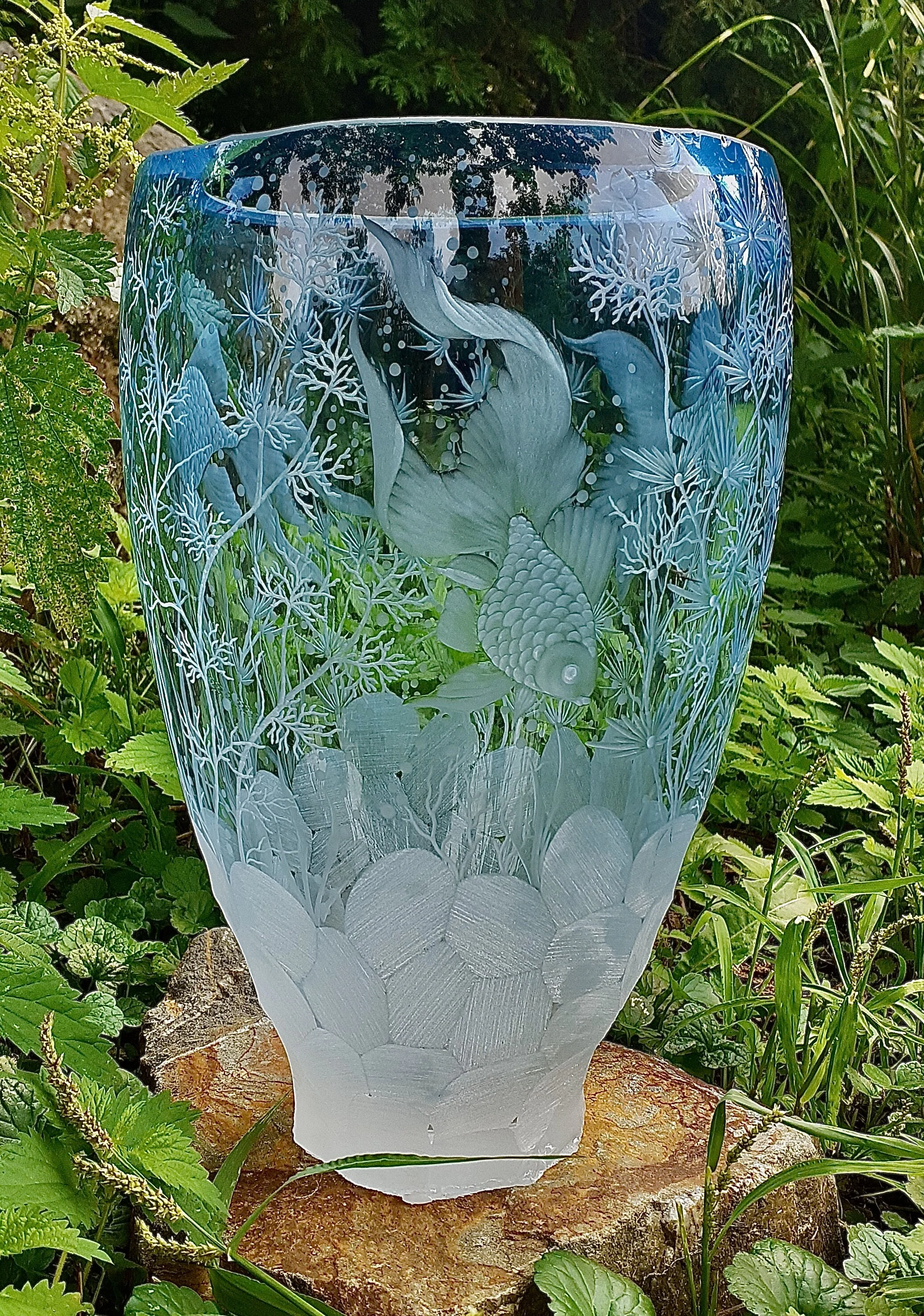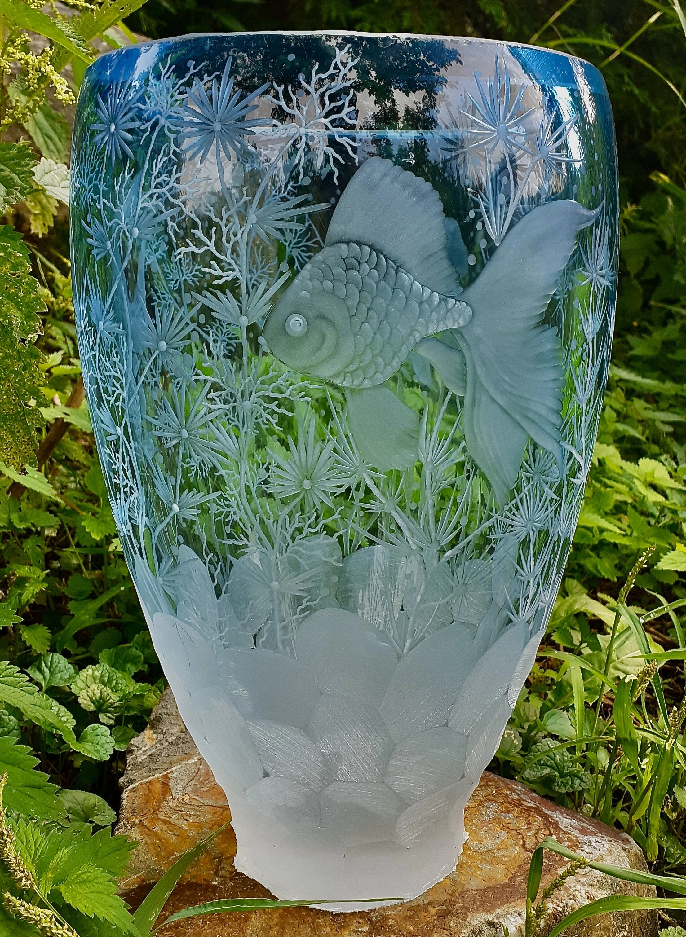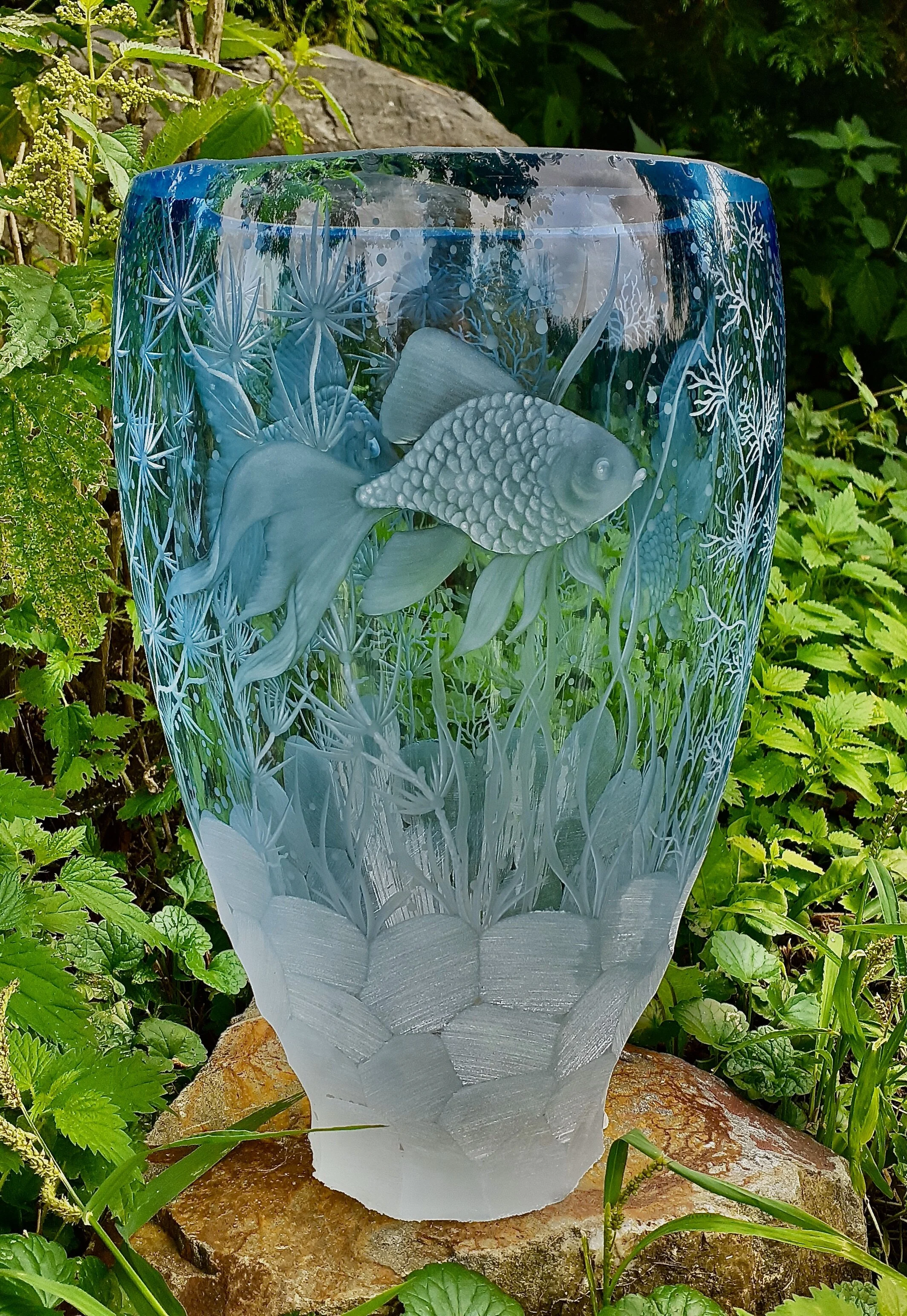 Hand cut and blown Lotos whisky set with two glasses. Hand made in Czech Republick.